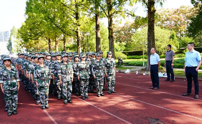 校领导观摩了各连队的训练情况,对同学们昂扬的斗志和整齐的队列给予充分肯定;并对教官严谨的训风、科学的组训方法表示高度赞赏,并详细询问了他们的军训保障情况。校领导希望承训教官坚持科学施训、精心组训、文明带训,参训师生再接再厉、拼搏奋进,以优异表现和成效圆满完成本次军训任务。