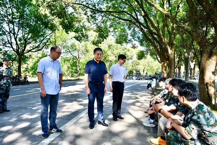 9月26日上午,校党委副书记、院长李庆宏,校党委委员、副院长张小明在学生处、教务处、武装部等部门负责人陪同下分别来到率水校区和横江校区的军训场地,亲切慰问正在紧张训练的2025级承训教官、参训新生、辅导员及军训工作人员。