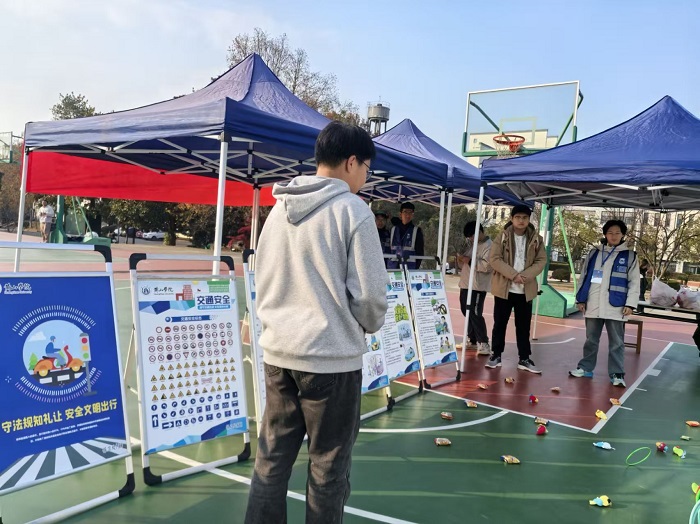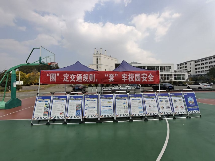 为强化学生交通安全意识,在第十四个122“全国交通安全日”来临之际,12月3日下午,安全管理处在率水校区一食堂前开展“‘圈’定交通规则,‘套’牢校园安全”交通安全主题宣传活动,我校300余名学生参加。